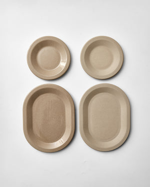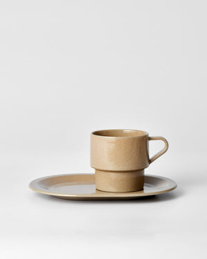 The saucer can be paired with all three cup sizes (3oz (95ml), 6oz (185ml), and 8oz (250ml)) , and the Oval saucer can be used to serve coffee together with cake or bread on one plate.