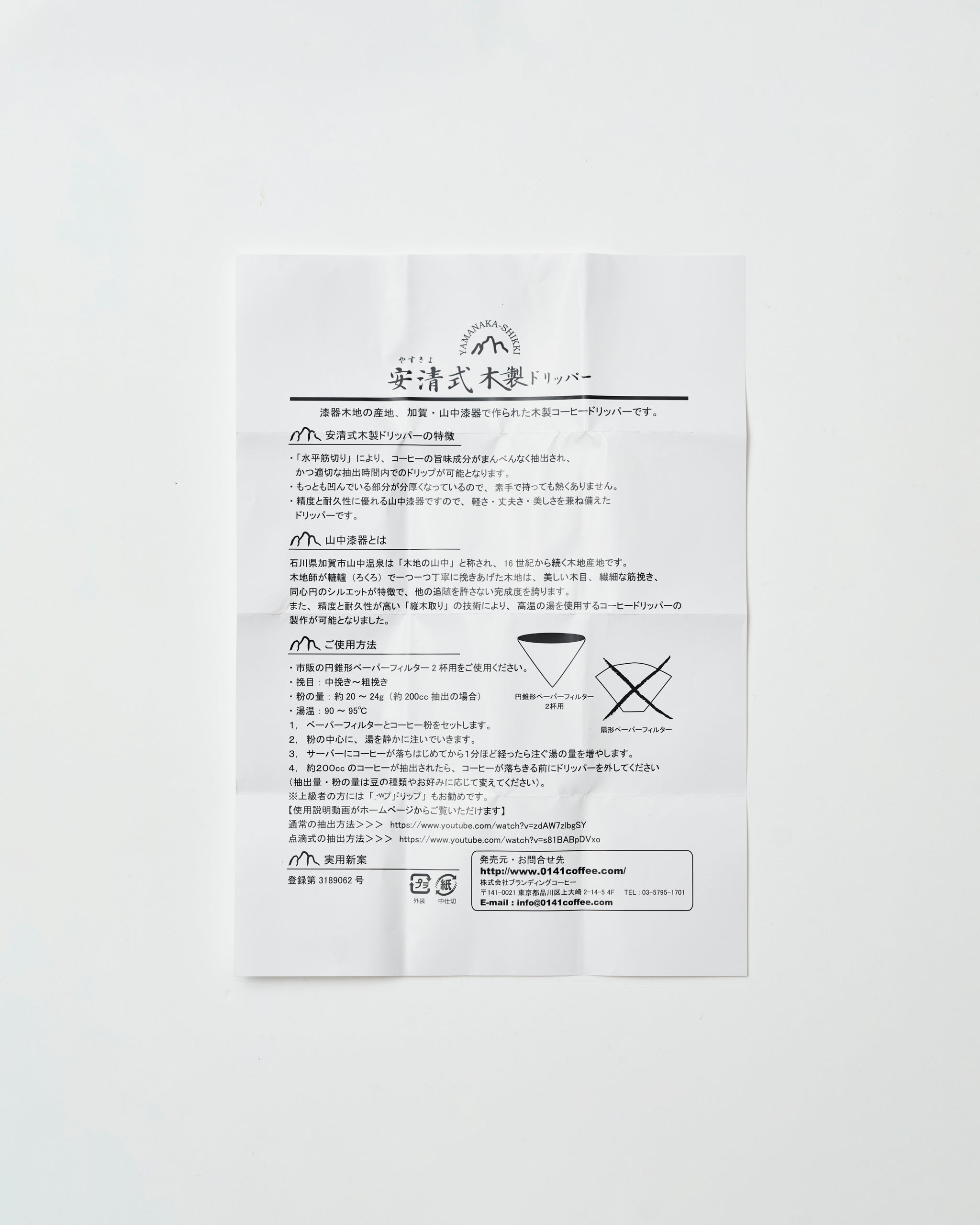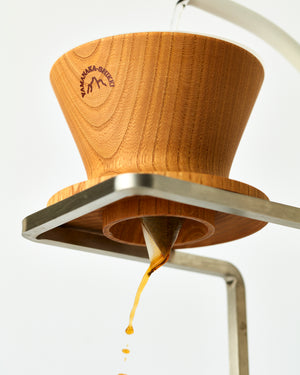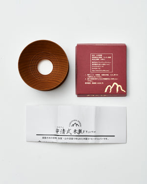 The “TAKUMI” version is a special edition of the Yasukiyo Wooden Dripper (Natural). Deep horizontal grooves are carved only into the lower half of the dripper’s inner wall, allowing you to control the extraction speed by adjusting your pouring. From a clean and light cup to a fuller-bodied one, it’s designed to suit a wide range of roast levels and brewing preferences.