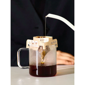 Our drip bags are filled with coffee all roasted by us in Kyoto, then packed with nitrogen flushing to maintain that gorgeous aroma of freshly ground coffee. It's easy to brew, and it's definitely a great alternative to instant coffee to up the game of quick fix to start the day or freshen up in the afternoon.