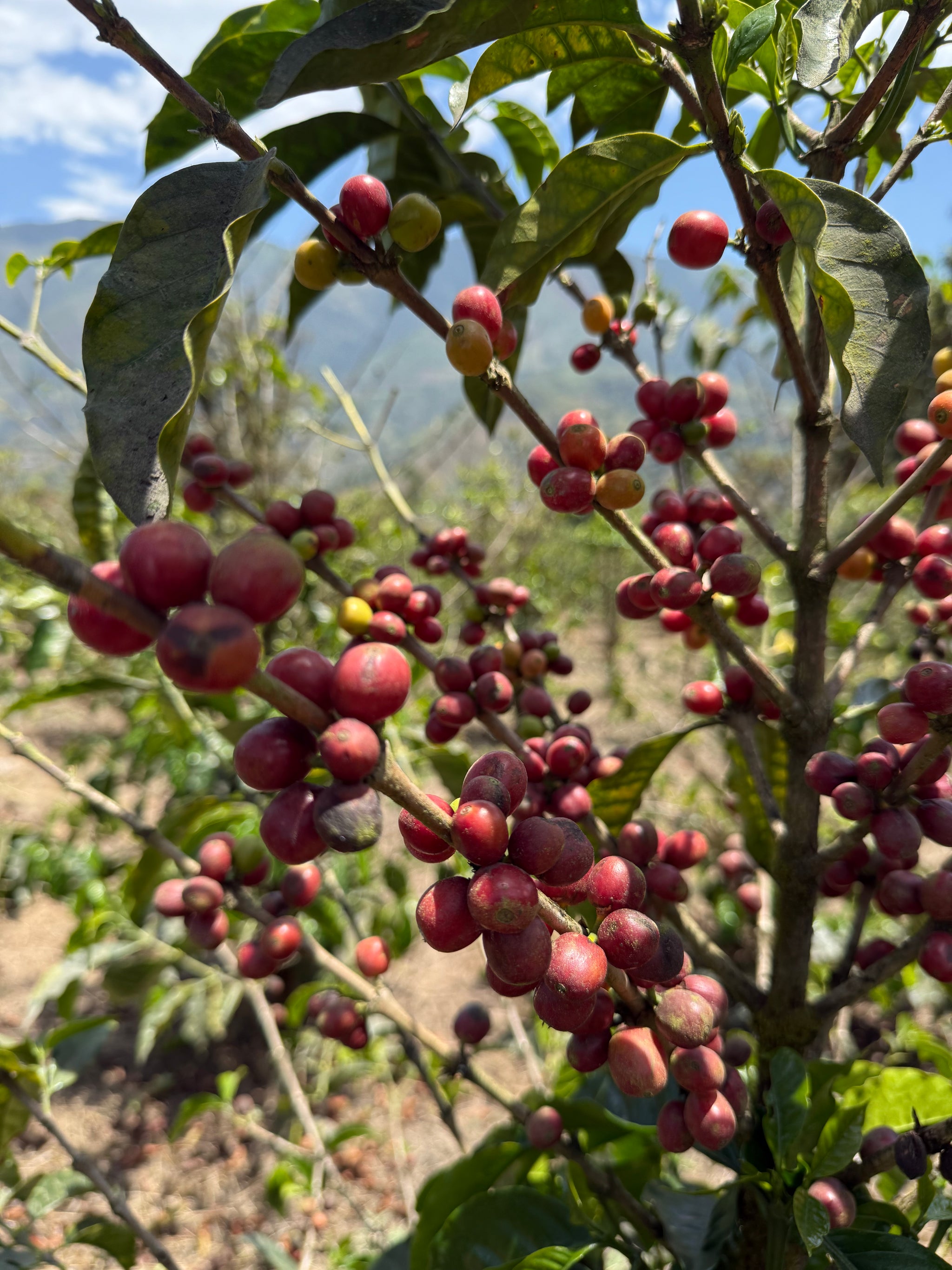 The Pallatanga region is surrounded by volcanoes, including Chimborazo, the highest mountain in Ecuador. It lies along a corridor that connects the volcanic highlands to the coastal regions, and the presence of volcanoes feels especially close—so close that volcanic ash can sometimes settle on the coffee leaves. Because of this, the soil is said to offer an exceptionally favorable environment for coffee cultivation.