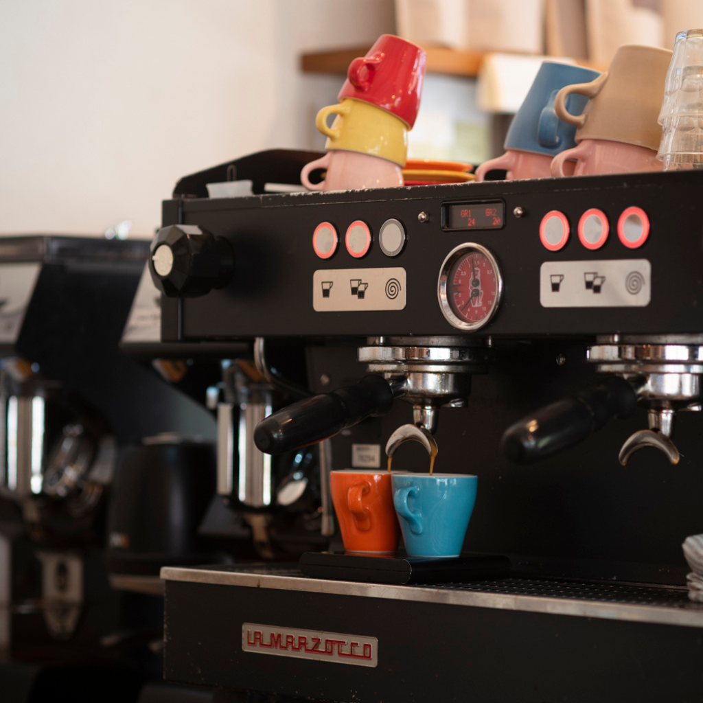 We have coffee taps, where you can quickly grab yourself either a hot or cold cup of coffee. You can enjoy them here or to-go, it's completely up to you.